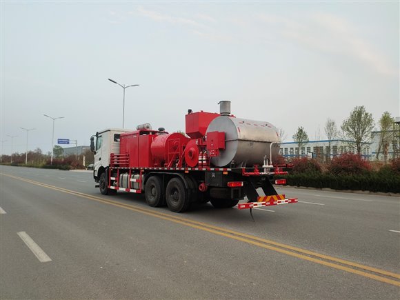 The car is mainly composed of a car chassis, diesel engine, mechanical gearbox, three- cylinder plunger pump, burner, on-board special boiler, high-pressure pipeline, low-pressure pipeline, fuel system, hydraulic system, and electronic control system.