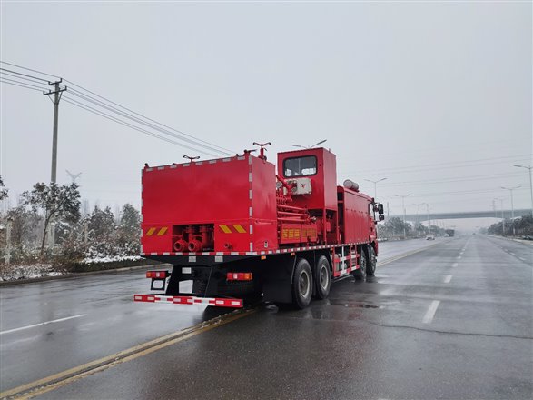This vehicle is mainly used for fracturing, water injection, and sand control operations in oil and gas fields. This equipment can adapt to high-pressure pumping liquid construction, hydraulic sandblasting, high-pressure hydraulic coal mining in coal mines, water injection and exhaust, high-pressure hydraulic rust removal of ships and other operations under various working conditions. It can also be used for high-pressure well washing, pressure testing, or high displacement fluid pumping operations.
