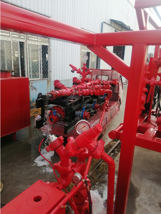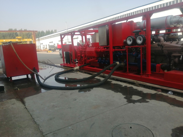 2020年10月25日,榮豐石油自主研發(fā)的兩臺YLQ1400型壓裂橇制造完成進(jìn)入負(fù)荷調(diào)試。設(shè)備的主要作用是向油井內(nèi)注入高壓、大排量的油井服務(wù)液,其主要由鋼性底座及框架、柴油發(fā)動機、液力變速箱、控制系統(tǒng)、壓裂泵及其輔助系統(tǒng)等組成。主要用于頁巖氣、煤層氣等油氣田深井、 中深井、淺井的各種壓裂作業(yè),該設(shè)備能進(jìn)行單機和聯(lián)機作業(yè),可遠(yuǎn)程進(jìn)行控制及操作。